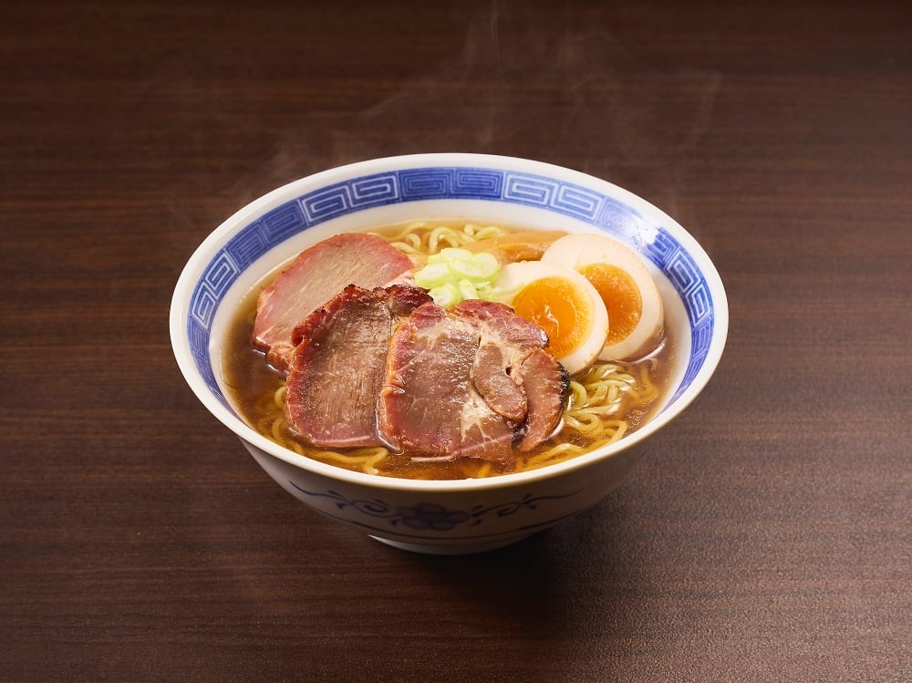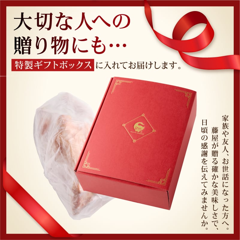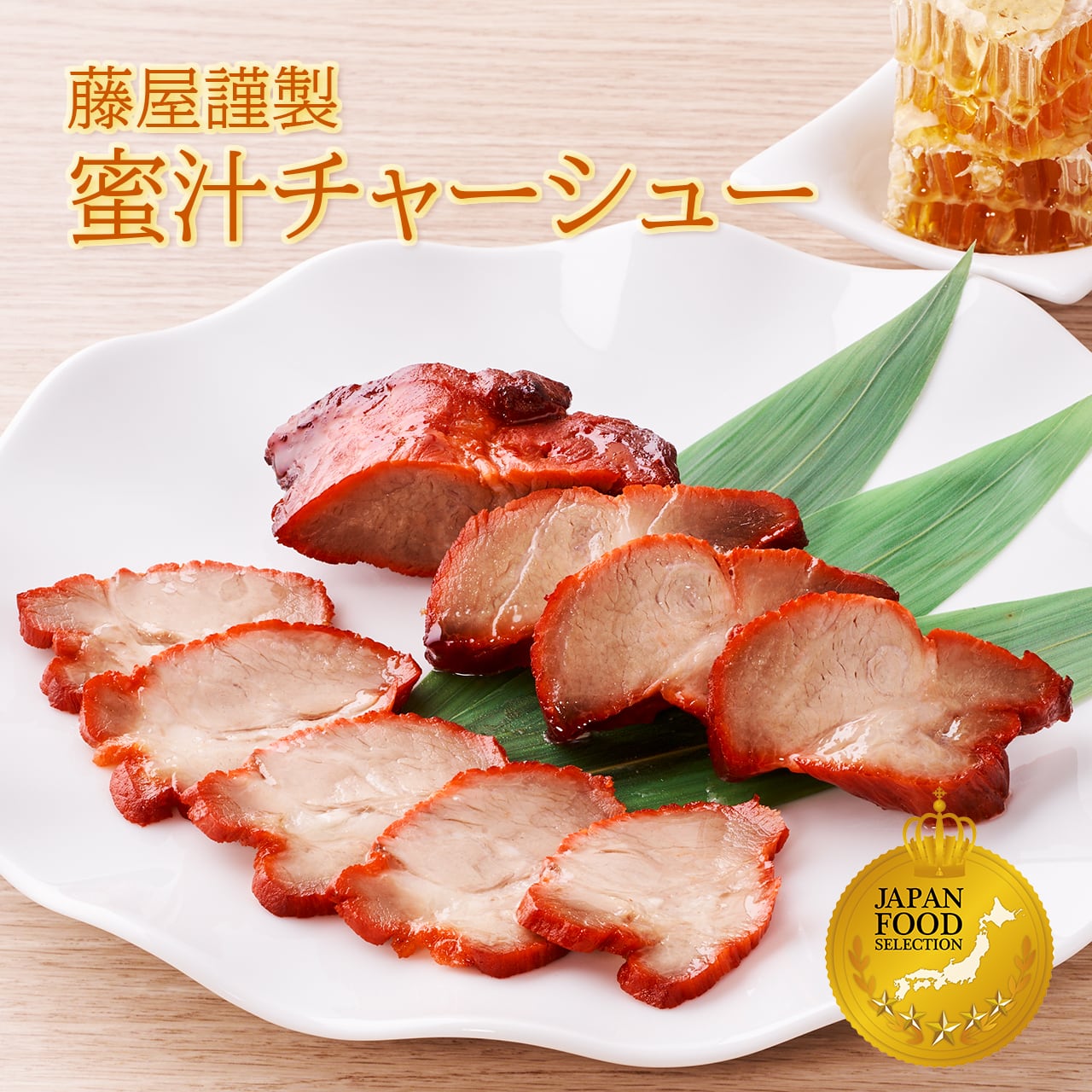 蜂蜜や練りゴマなどの10種類以上の原材料を使用した藤屋特製のタレで漬込み、焼き上げた旨味あるチャーシューです。紅色も鮮やかな商品です。