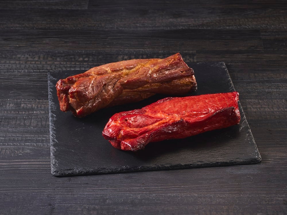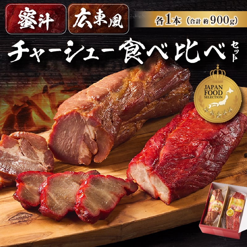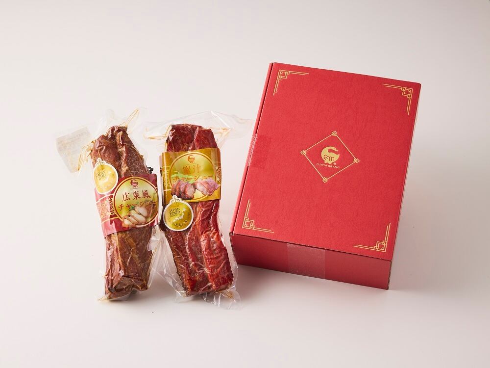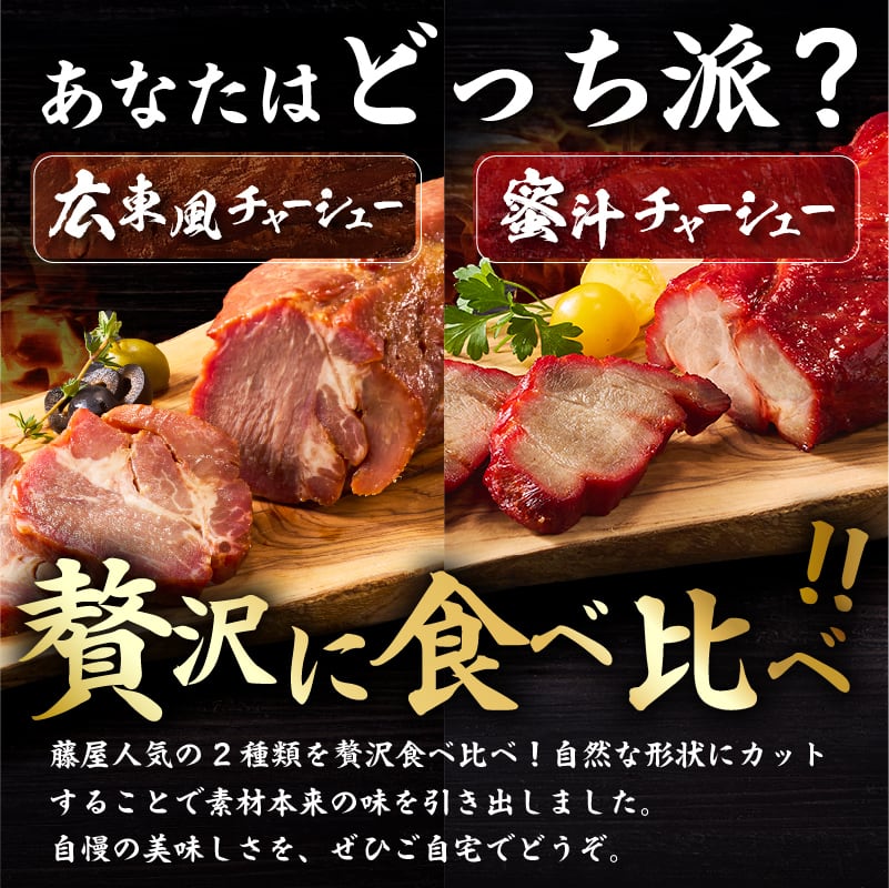 蜜汁チャーシュー(300g以上1本)と広東風チャーシュー(500g以上1本)の食べ比べセットになります。